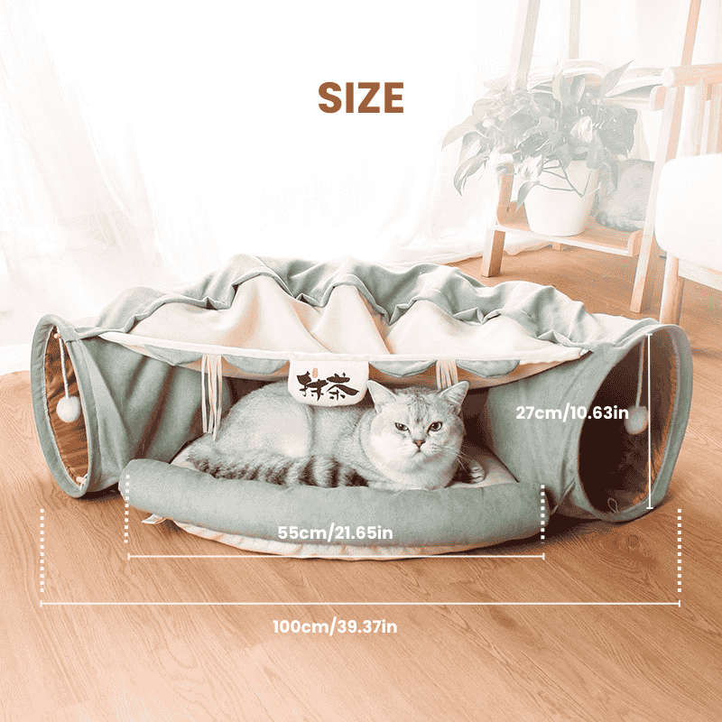 Perfect for cats of all ages! A comfortable, foldable, and durable shell-shaped cat tunnel bed that offers entertainment, comfort, and convenience. Ideal for indoor cats, especially in small spaces.